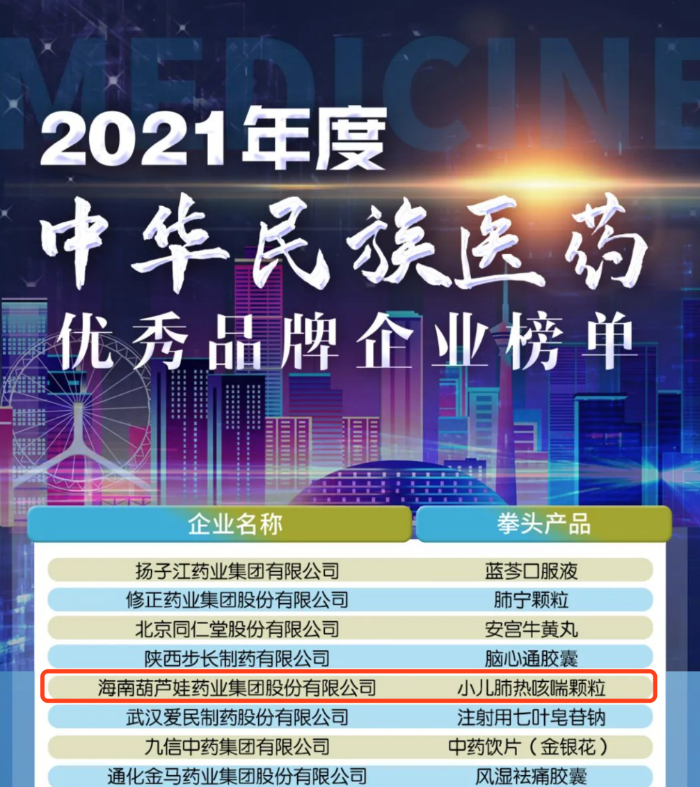 12月29日,全国工商联医药业商会发布了“2021年度中华民族医药优秀品牌企业榜单”,z6com人生就是博·药业集团凭借黄金单品小儿肺热咳喘颗粒(4克)实力登榜。