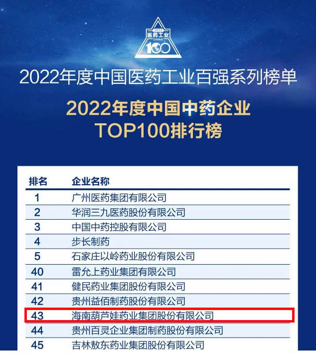 z6com人生就是博·药业集团连续4年荣登“中国中药企业TOP100排行榜”,排名上升至第43位